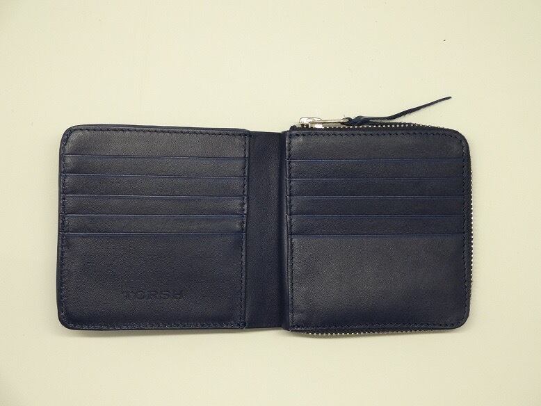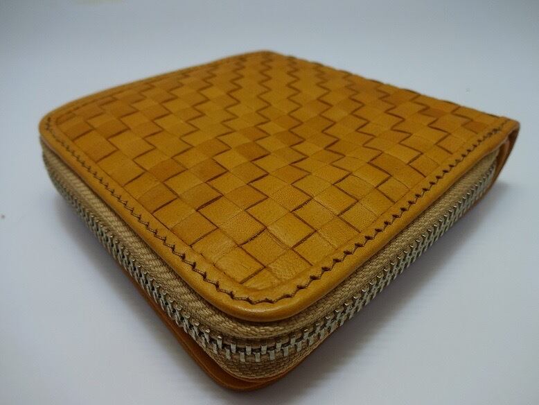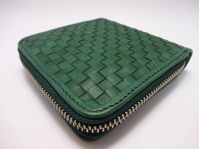 癒しを感じる程のソフトなレザーを、飽きの来ないイントレチャートの二つ折り財布に仕上げました。