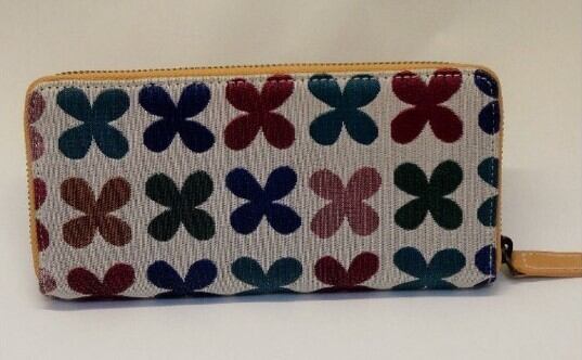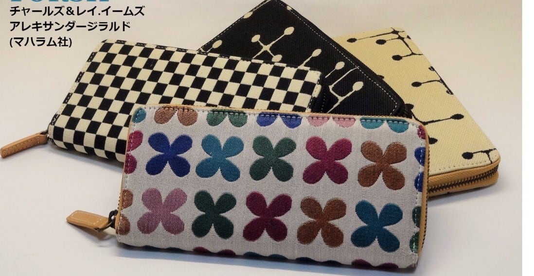 ジラルド&イームズデザインのファブリック使用(アメリカ・マハラム社買付け)の長財布です。