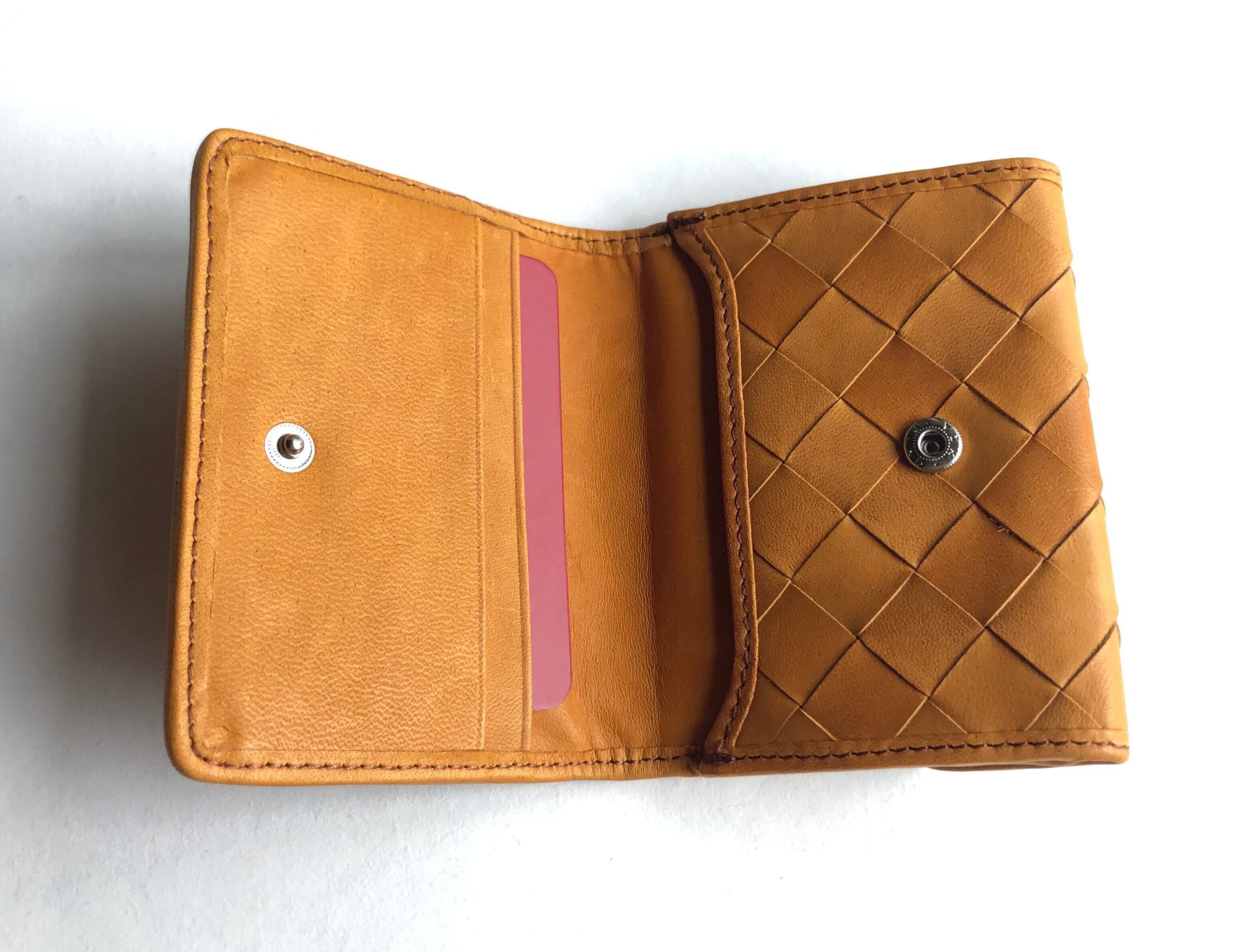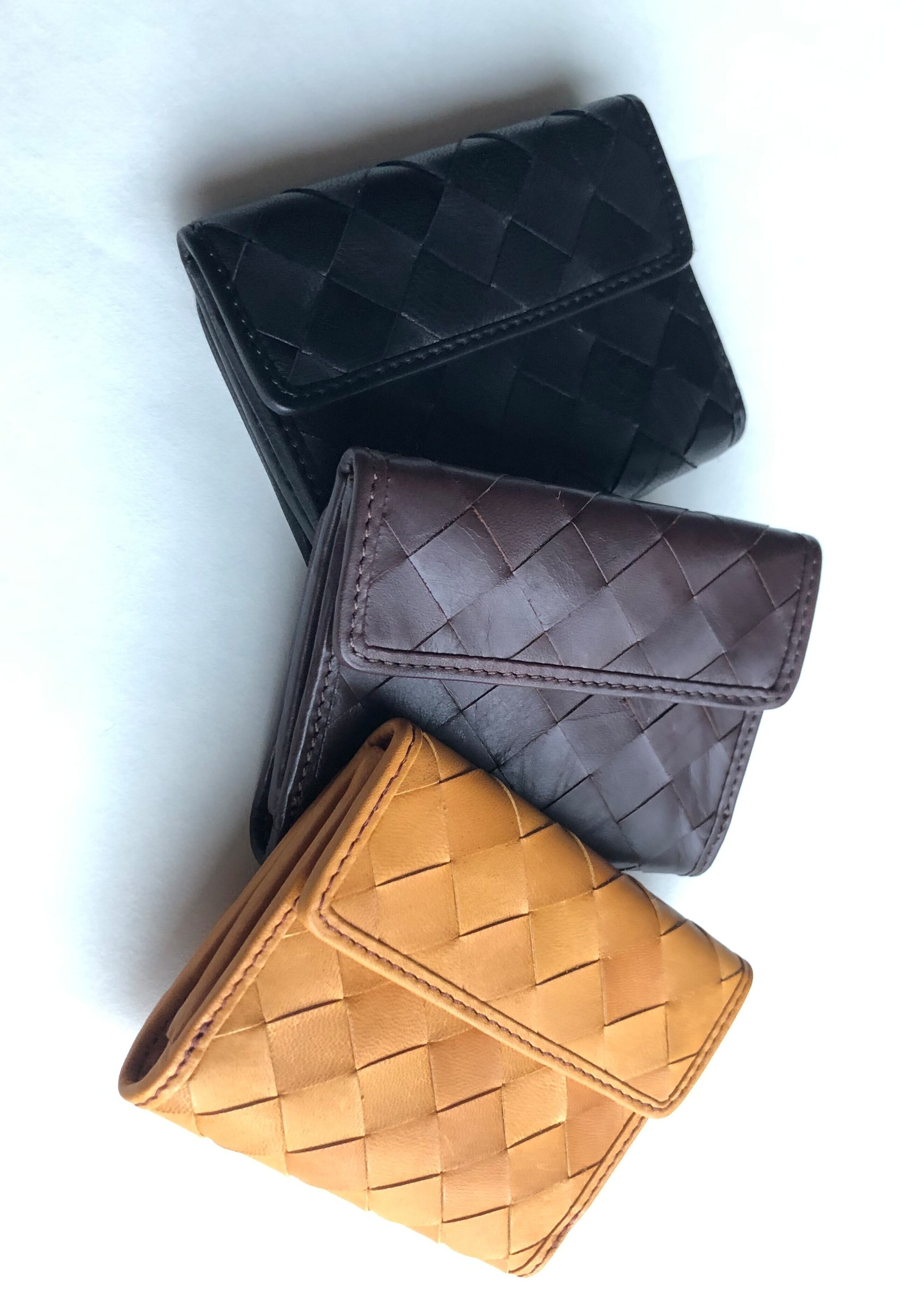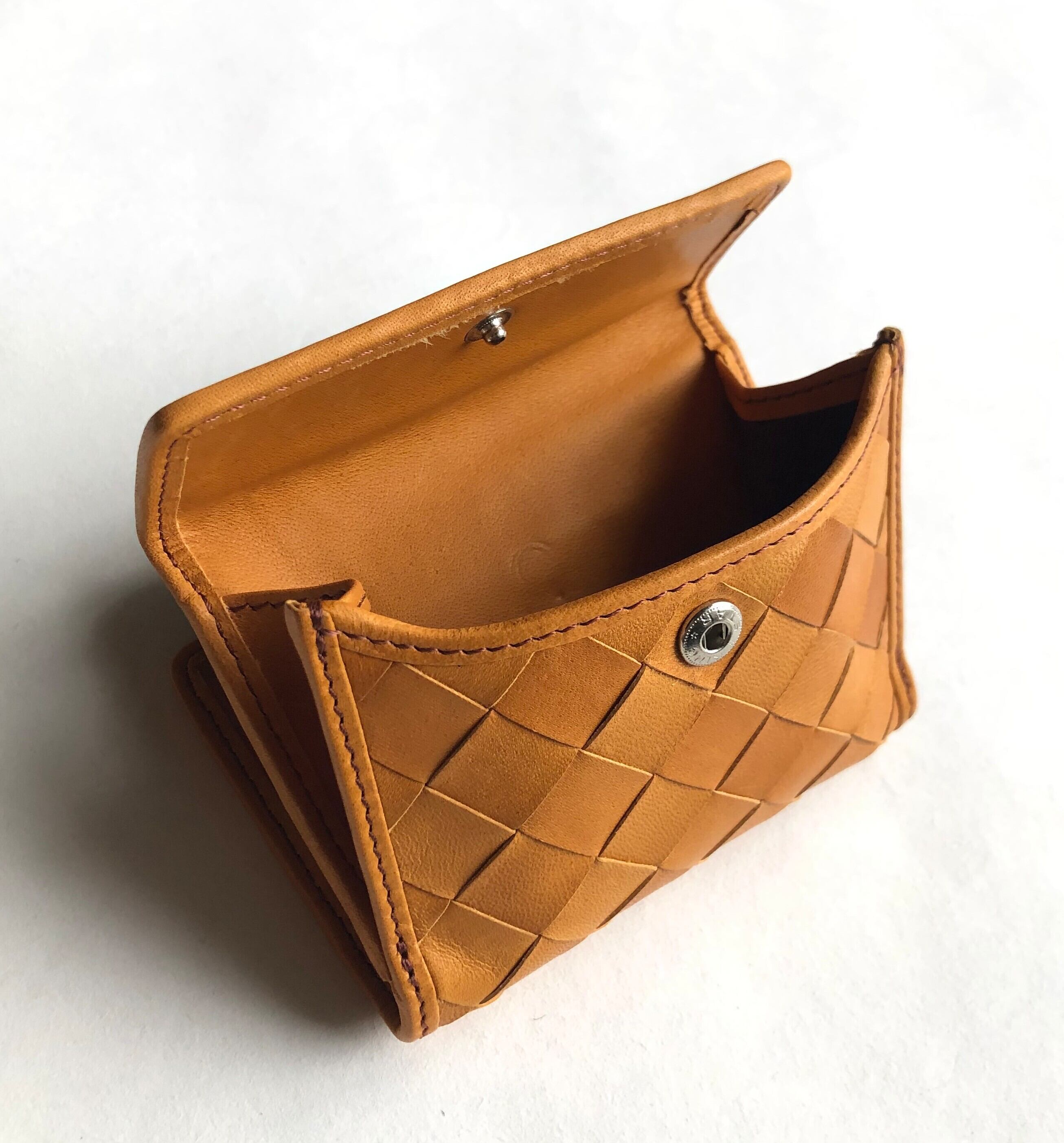国産オイルポニーレザーをイントレチャートの小型財布に仕上げました。